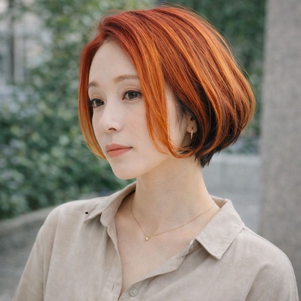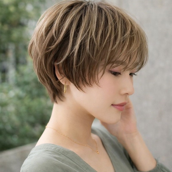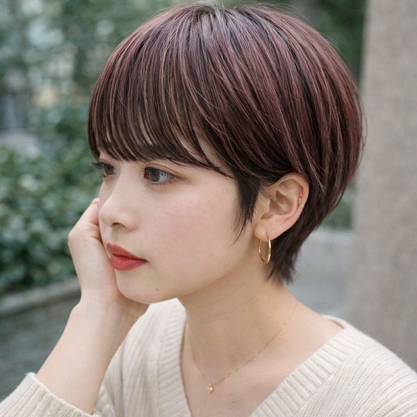 表面と内側で色味にコントラストをつけることで、立体感と動きを演出し、シンプルなショートスタイルもぐっと垢抜けて見えます。