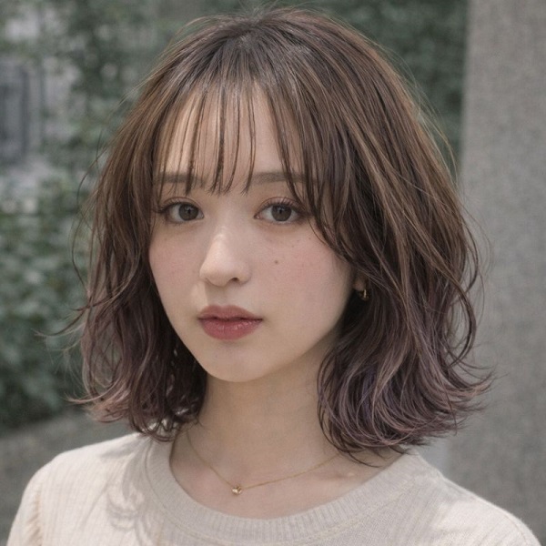 ミディアムの長さならではの動きとカラーの組み合わせが、自然な立体感を演出し、顔まわりを明るく見せてくれます。