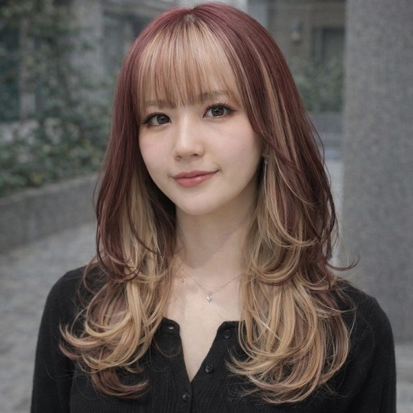 表面と内側で色味に差をつけることで、ロングヘア特有の動きが引き立ち、軽やかで垢抜けた印象に仕上がります。