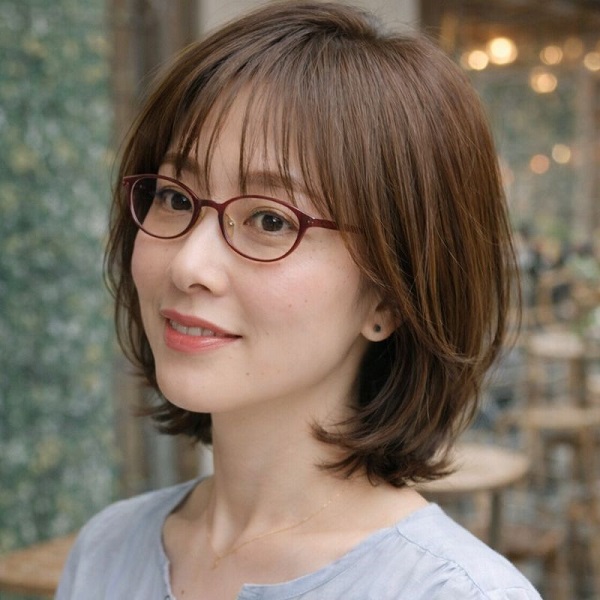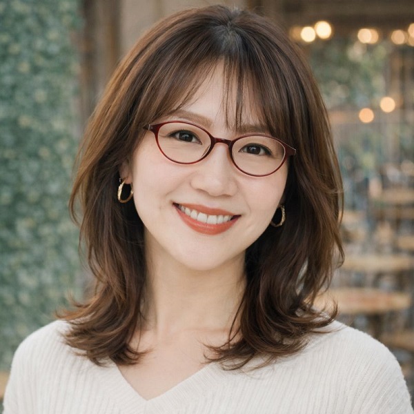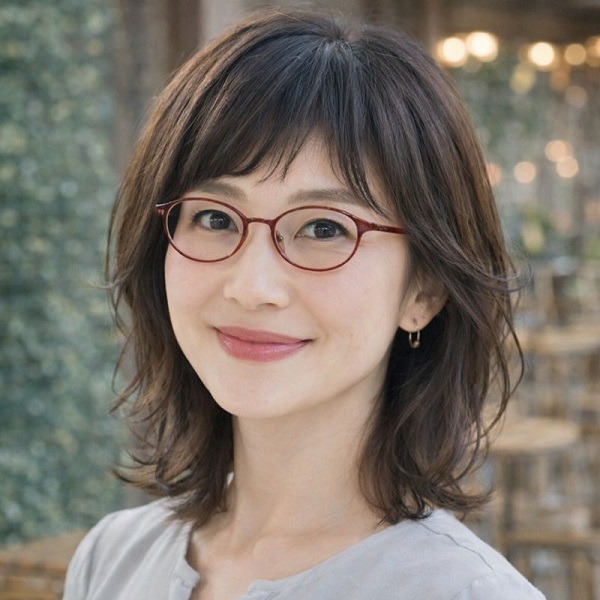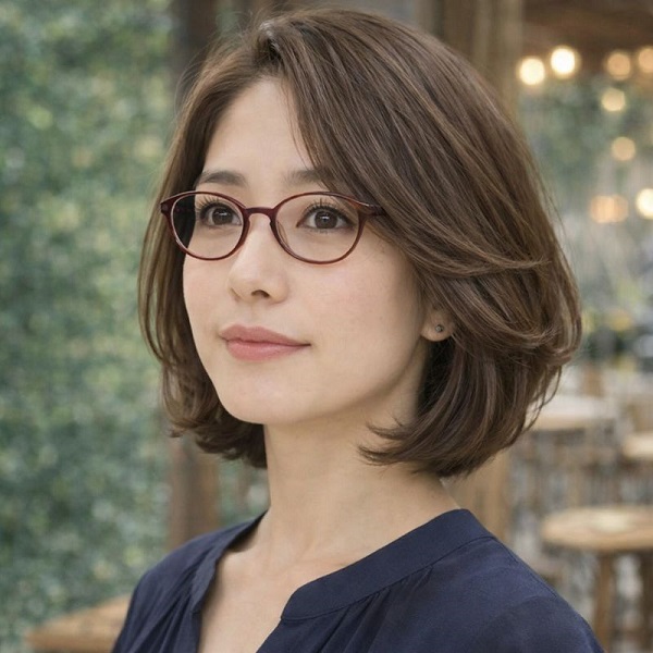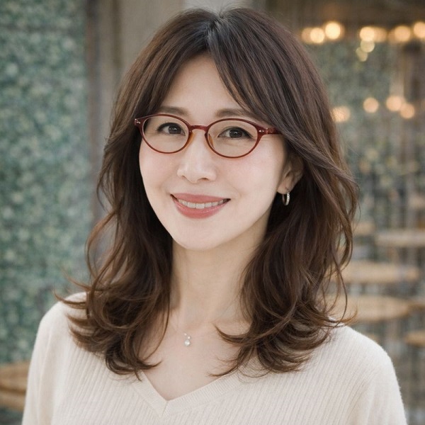 逆に、顔まわりに余白を残し、動きを感じる髪型にすることで、眼鏡の知的な印象がやわらぎ、上品さや親しみやすさが引き立ちます。