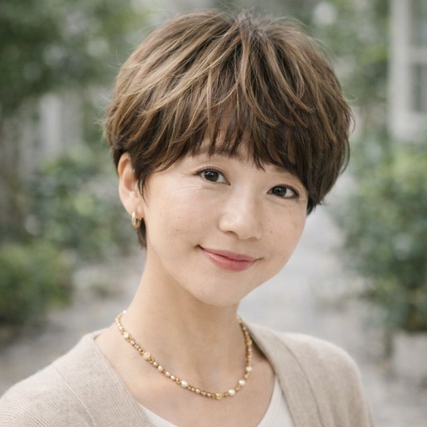 特にショートヘアと組み合わせることで、動きのある若々しい印象に仕上がるのが魅力です。