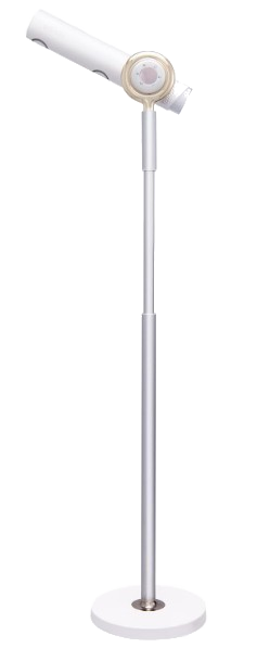 設置スペースと条件が必要。スタンド型で高さ・奥行・幅があり(幅約24×奥行24×高さ96~137 cm/重量約4.8kg)、洗面所や脱衣所が狭い住宅環境では設置が難しい可能性があります。