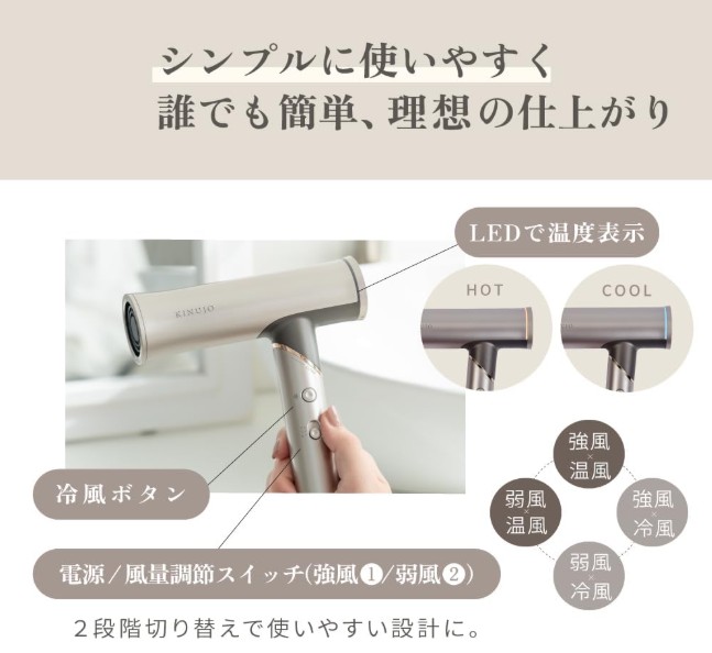 | 商品名 | KINUJO Hair Dryer Voyage(ヘアドライヤー ボヤージュ)HW001 |
