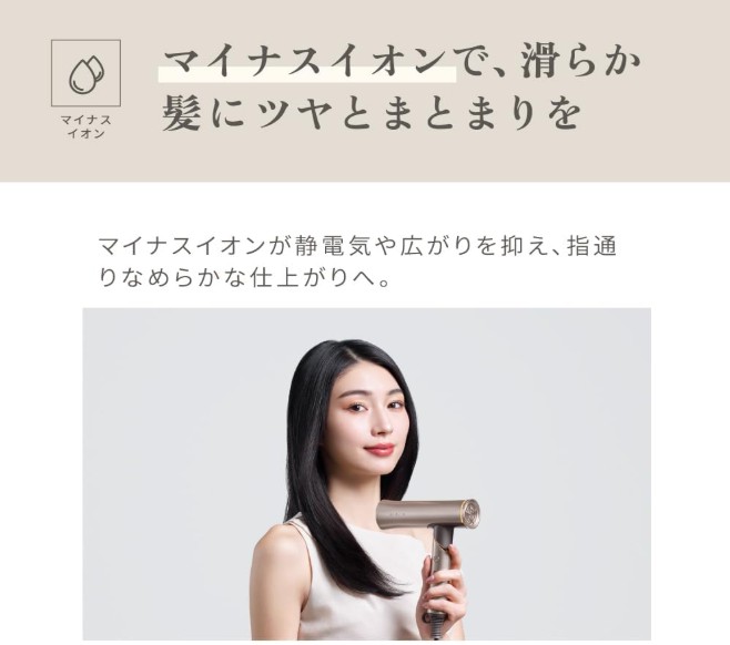 さらに、超遠赤外線とマイナスイオンの効果により、髪の内部の水分を保ちながら乾かせるため、パサつきにくく指通りのよい自然なツヤ感のある仕上がりに導きます。