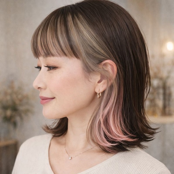 内側の明るさは毛先と顔まわりの動きに合わせて見えるため、派手になりすぎず立体感だけを自然にプラス。